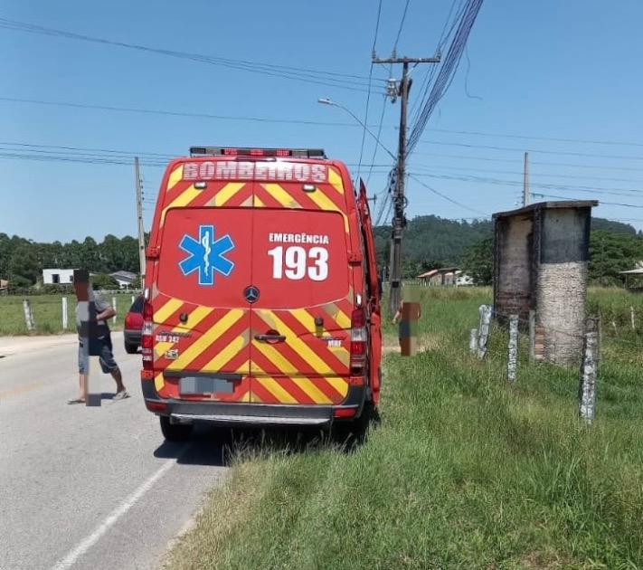 O motociclista, de 38 anos, foi socorrido pelo Corpo de Bombeiros consciente, orientado, com sinais vitais, apresentando possível fratura no tornozelo esquerdo e escoriação na panturrilha direita. Após atendimento, ele foi conduzido ao hospital.